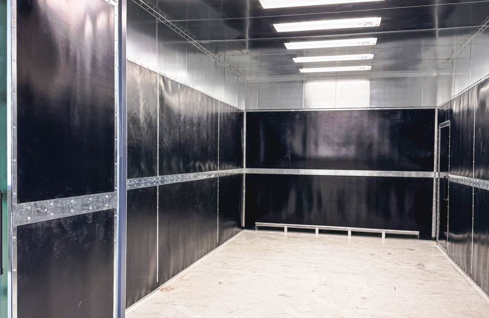 Description: Heated Side Down Downdraft (Booth Mounted Heater). Model: SDD-163014-18LED-BMH. Dimensions: 16′ Wide x 14′ High x 30′ Working Depth. Status: Complete.